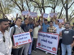 નેશનલ હેલ્થ મિશનમાં ગુજરાતના લગભગ 27 હજારથી વધુ કર્મચારી ફરજ બજાવી રહ્યા છે. આ કર્મચારીઓ રાજ્યની વિવિધ આરોગ્ય કેન્દ્રમાં ટેકનિકલ કેડર અને નોન ટેકનિકલ કેડરમાં સેવા આપી રહ્યા છે. જેમાંથી લગભગ 20 હજાર જેટલા કર્મચારીઓ માસ સીએલ પર ઉતરતા આરોગ્ય સેવાઓ ખોરવાઈ હતી. એક દિવસની માસ સીએલ પર ઉતરેલા કર્મચારીઓ ગાંધીનગરમાં આવેલી સત્યાગ્રહ છાવણી ખાતે એકઠા થયા હતા. રાજ્યના મોટી સંખ્યામાં નેશનલ હેલ્થ મિશનના કર્મચારીઓ સત્યાગ્રહ છાવણી ખાતે એકઠા થયા અને વિરોધ કર્યો હતો. ગાંધીનગર એકઠા થયેલા સેંકડો કર્મચારીઓ હાથમાં મુખ્ય માંગણી અંગે પ્લે કાર્ડ તેમજ બેનરો સાથે અમારી માંગો પૂરી કરો સહિતના માંગણી અંગે સૂત્રોચાર કર્યા હતા.