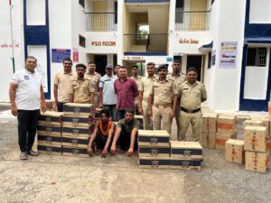 કુકરમુંડા પોલીસ સ્ટાફના માણસો રવિવારના રોજ પોલીસ સ્ટેશન વિસ્તારમાં પ્રોહી. ગુન્હા અંગેની રેડમાં હતા તે દરમિયાન ખાનગી રાહે બાતમી મળી હતી કે, એક સફેદ કલરની મહિન્દ્રા પીકઅપ ટેમ્પો નંબર એમપી/૧૨/ગીએ/૧૫૮૧નો ચાલક તેના ટેમ્પામાં ટામેટાની આડમાં ભારતીય બનાવટનો ઇંગ્લિશ દારૂનો જથ્થો ભરી મહારાષ્ટ્ર રાજ્યના પ્રકાશા તરફથી પીશાવર તરફ આવનાર છે જે બાતમીનાં આધારે પોલીસ સ્ટાફના માણસોએ પીશાવર પોલીસ ચેક પોસ્ટ પાસે વાહન ચેકિંગમાં હતા. તે દરમિયાન બાતમીવાળી મહેન્દ્ર પીકઅપ ટેમ્પો આવતા જોઈ પોલીસે ટેમ્પોને રોકી સાઈડમાં પાર્ક કરાવી હતી અને પોલીસે પીકઅપ ટેમ્પોમાં તપાસ હાથ ધરતા ટેમ્પોમાં સડેલા ટામેટાની કેરેટ નીચે ભારતીય બનાવટનાં અલગ અલગ બ્રાન્ડની ઇંગલિશ દારૂની કૂલ ૨,૫૦૮ નંગ બોટલો મળી આવી હતી જેની કિંમત રૂપિયા ૪,૫૨,૦૭૬/- હતી.