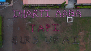 ઉકાઈનાં નિવાસી કન્યા શાળાની વિદ્યાર્થીનીઓએ ‘ધરતી આબા’નું માનવ ચિત્ર બનાવી જનજાગૃતિનો સંદેશ આપ્યો
