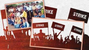 કાકરાપાર ટાઉનશીપના ગેટ સામે વિવિધ માંગણીઓ સાથે મજૂરોની હડતાળ