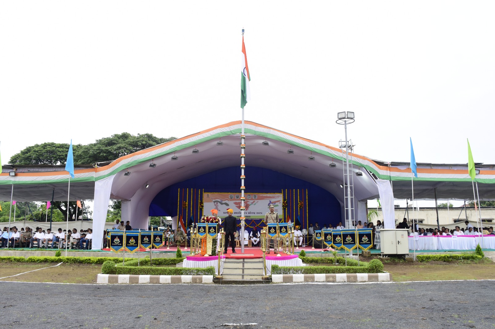 તાપી જિલ્લાના વ્યારા સ્થિત પોલીસ હેડક્વાર્ટરના પટાંગણમાં આન, બાન અને શાન સાથે ૭૯માં સ્વતંત્રતા પર્વની ઉજવણી પ્રસંગે રાજ્યના આદિજાતિ વિકાસ રાજ્યમંત્રીશ્રી કુંવરજીભાઈ હળપતિએ રાષ્ટ્રધ્વજને ગૌરવભેર